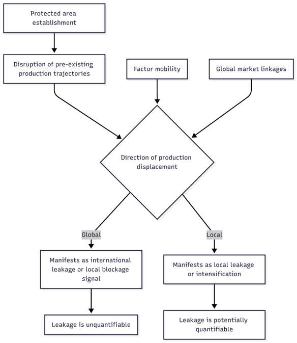 Following our discussion, I have refined the structure for the first chapter on local leakage. The approach builds upon the work of Ford et al. (2020) and Fuller et al. (2020) but introduces a crucial difference in research design. Moving beyond solely a comparison of rates inside and outside a Protected Area (PA), I am designing a deductive approach. This constructs causal pathways between the context of the PA and its potential local impacts on other habitats within the landscape. These lead to testable hypotheses which can be examined using comparative methods between landscapes with different features.